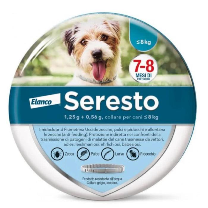 Il Collare Seresto è un efficace prodotto antiparassitario per cani di taglia piccola fino a 8 kg, progettato per offrire una protezione duratura contro pulci e zecche. Tra i suoi vantaggi principali:
